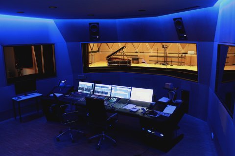 Im Zentrum unserer drei Aufnahmeräume liegt der große Regieraum. Aus ihm heraus können die Aufnahmen aus allen drei Aufnahmestudios perfekt koordiniert werden. Die großen und entspiegelten Sichtfenster ermöglichen einen visuellen Kontakt zwischen Tontechniker oder Aufnahmeleiter zu den aktiven Musikern.